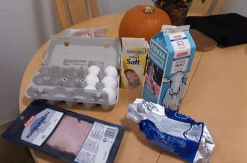 sekota munat, suola, maito, kinkku ja muut vapaaehtoiset aineet